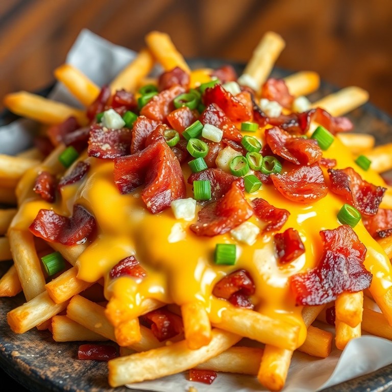 Diese Speck-Käse-Pommes sind inspiriert von den legendären Burger-King-Kreationen: goldgelbe, knusprige Pommes, überzogen mit einer würzigen Käsesauce und knusprig gebratenem Speck. Perfekt als Snack oder als Beilage für einen gemütlichen Abend!