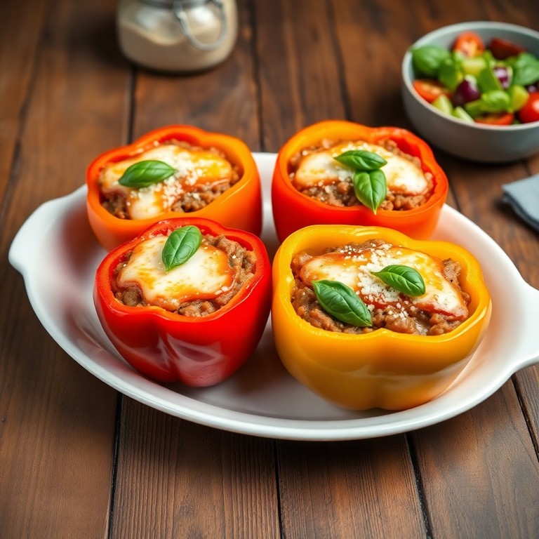 Diese italienisch inspirierten gefüllten Paprika sind ein köstliches Low-Carb-Hauptgericht. Saftiges Rinderhackfleisch wird mit aromatischen italienischen Kräutern, Tomaten, Zwiebeln und Knoblauch vermischt, dann in bunte Paprikaschoten gefüllt und mit Mozzarella überbacken. Perfekt für ein leichtes, sättigendes Abendessen ohne viele Kohlenhydrate.