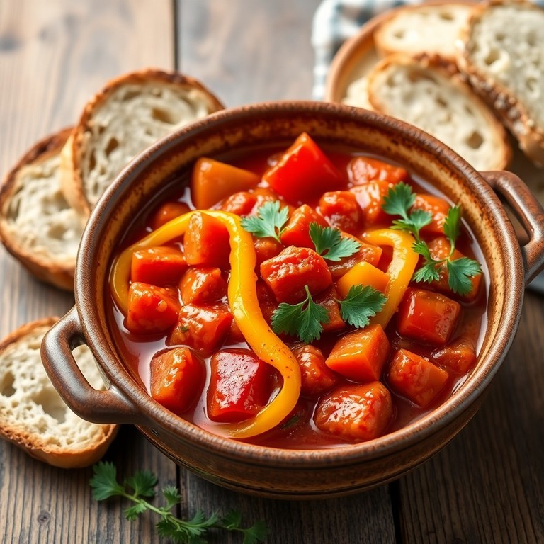 Классический рецепт лечо — популярного болгарского блюда из сладкого перца и помидоров, тушёных с луком и чесноком. Это лечо обладает ярким, насыщенным вкусом и ароматом, идеально подходит для зимних заготовок и быстрого обеда. Рекомендуется подавать как самостоятельное блюдо или в качестве гарнира к мясу и картофелю.