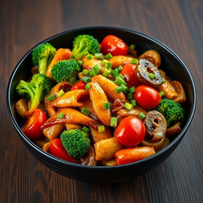 Una receta asiática con pollo, brócoli y cebolla en un salteado lleno de sabores intensos, ideal para quienes buscan una opción nutritiva y fácil de preparar. Este plato combina la suavidad del pollo con la textura crujiente del brócoli y el dulzor profundo de la cebolla caramelizada, complementado con champiñones y un toque fresco de tomate para equilibrar sabores.