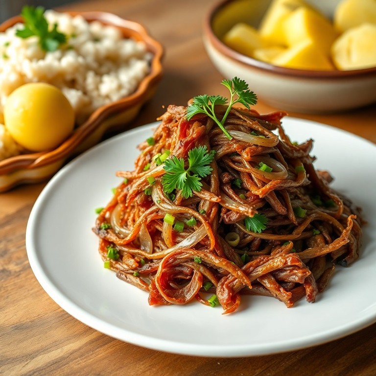 Uma receita clássica e saborosa de carne seca desfiada, preparada com cebola e salsinha fresca. Ideal para acompanhar arroz branco ou batatas cozidas, trazendo um toque rústico e tradicional português à sua mesa.