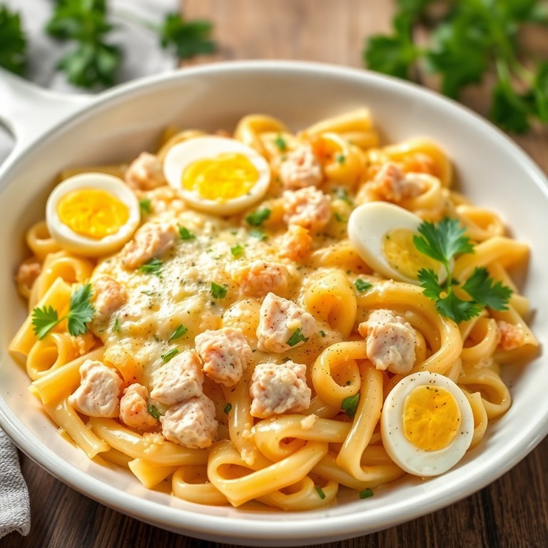 Leichter Nudelauflauf mit Thunfisch und Ei (383 kcal)