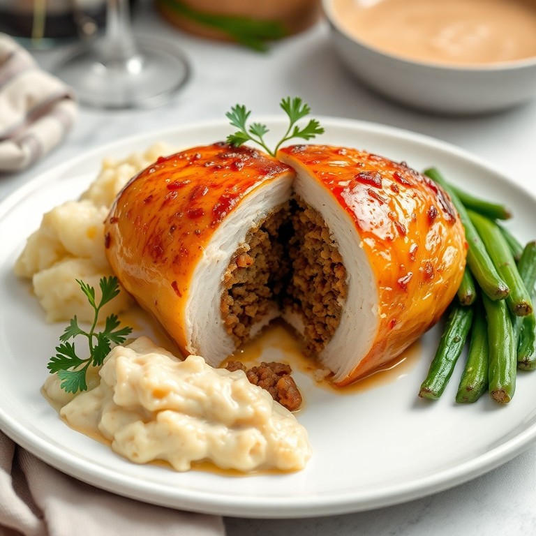 Juicy chicken breasts filled with traditional haggis, seasoned with herbs, and oven-baked to perfection for a hearty Scottish-inspired dish. This recipe combines the rich, savory flavors of classic haggis with tender chicken, creating a unique and satisfying meal perfect for any occasion. Serve with a side of creamy mashed potatoes and steamed vegetables for a complete Scottish-inspired dinner.