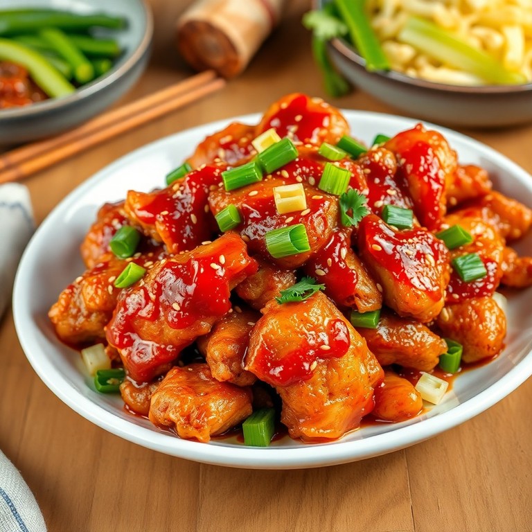 A bold and flavorful Asian stir-fry featuring crispy chicken pieces coated in a fiery Szechuan peppercorn sauce. This dish combines the crunch of perfectly fried chicken with the numbing heat of Szechuan peppercorns and chili, delivering an authentic and exciting taste experience. Ideal for lovers of spicy food seeking a satisfying and aromatic meal.