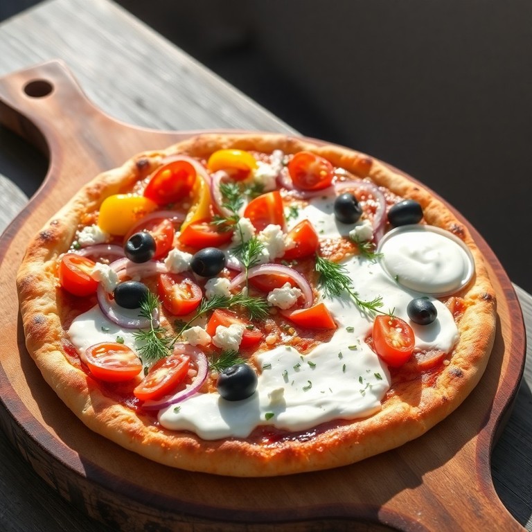 Diese kreative Tzatziki-Pizza vereint knuspriges Fladenbrot mit einer cremigen Tzatziki-Basis, frischem mediterranem Gemüse und geschmolzenem Käse. Perfekt für ein schnelles, aromatisches Abendessen oder als Highlight auf jeder Party. Die Kombination aus kühlem Joghurt, würzigem Knoblauch und knackigem Gemüse sorgt für eine Geschmacksexplosion, die an einen Sommerabend in Griechenland erinnert.