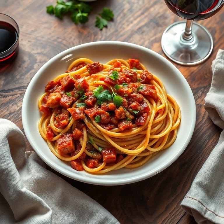 Massa cozida al dente com molho temperado de calabresa e bacon, uma opção rápida e cheia de sabor para o dia a dia. Essa receita combina a intensidade da calabresa com a textura crocante do bacon, resultando em um molho rico e aromático que envolve perfeitamente o espaguete. Ideal para uma refeição prática, sem abrir mão do sabor marcante.