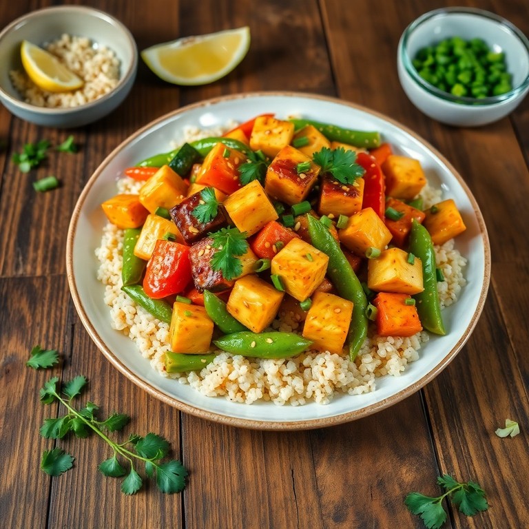 Diese herzhafte, eiweißreiche Gemüsepfanne mit Räuchertofu und Quinoa ist ein schnelles, sättigendes Gericht, das komplett ohne Paprika auskommt. Verschiedene proteinreiche Zutaten wie Edamame, Kichererbsen und vegane Hähnchenstücke sorgen für eine Extraportion Eiweiß. Aromatische Gewürze und frische Kräuter runden das Gericht perfekt ab. Es eignet sich sowohl heiß aus der Pfanne als auch kalt als Meal-Prep oder für die Mikrowelle.