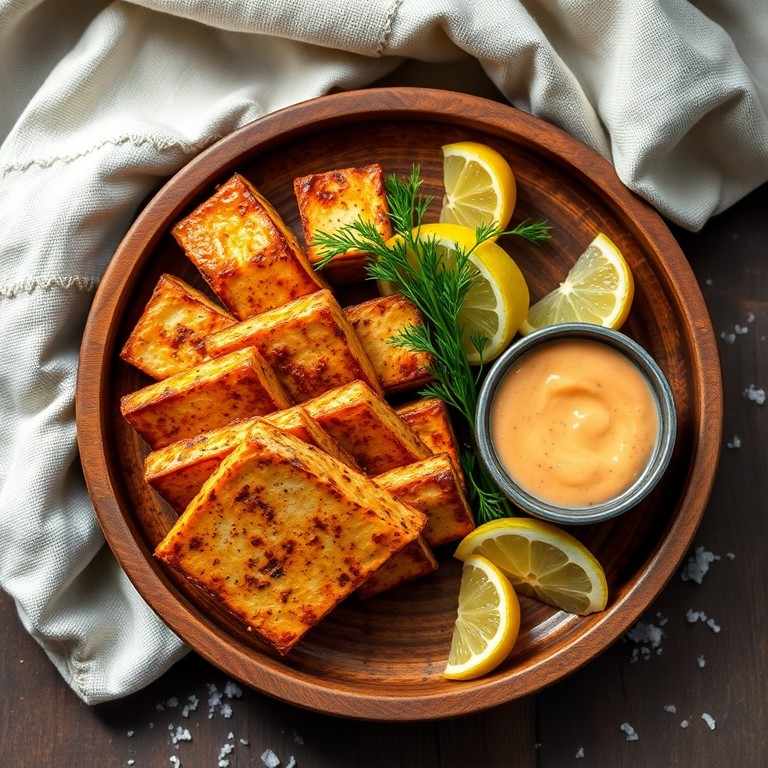 Knusprige Tofuscheiben, die durch eine spezielle Marinade und Räuchergewürze einen intensiven Geschmack ähnlich wie Räucherlachs erhalten. Dazu servieren wir eine selbstgemachte, cremige Räuchersauce, die perfekt als Dip oder Aufstrich für schnelle vegane Snacks geeignet ist. Dieses Rezept ist ideal für alle, die den Geschmack von Räucherlachs vegan genießen möchten.