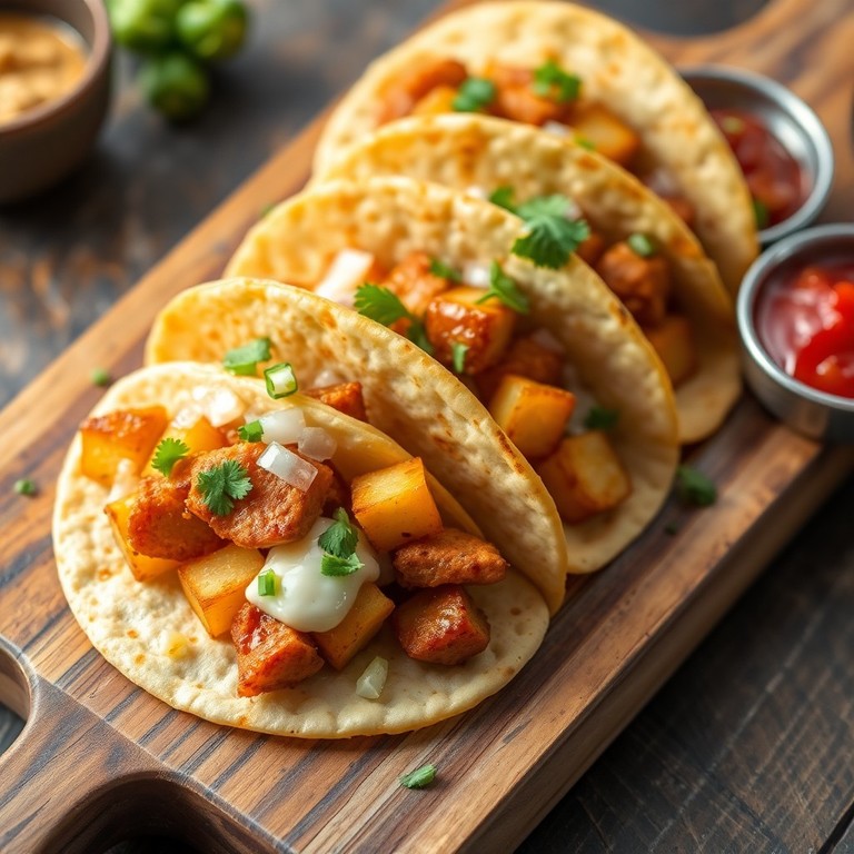 Deliciosos tacos rellenos de pollo desmechado, queso mozzarella fundido y un toque de cebolla, con papas doradas que aportan textura crujiente. Perfectos para una comida rápida y sabrosa que combina sabores tradicionales con un toque irresistible de queso fundido.