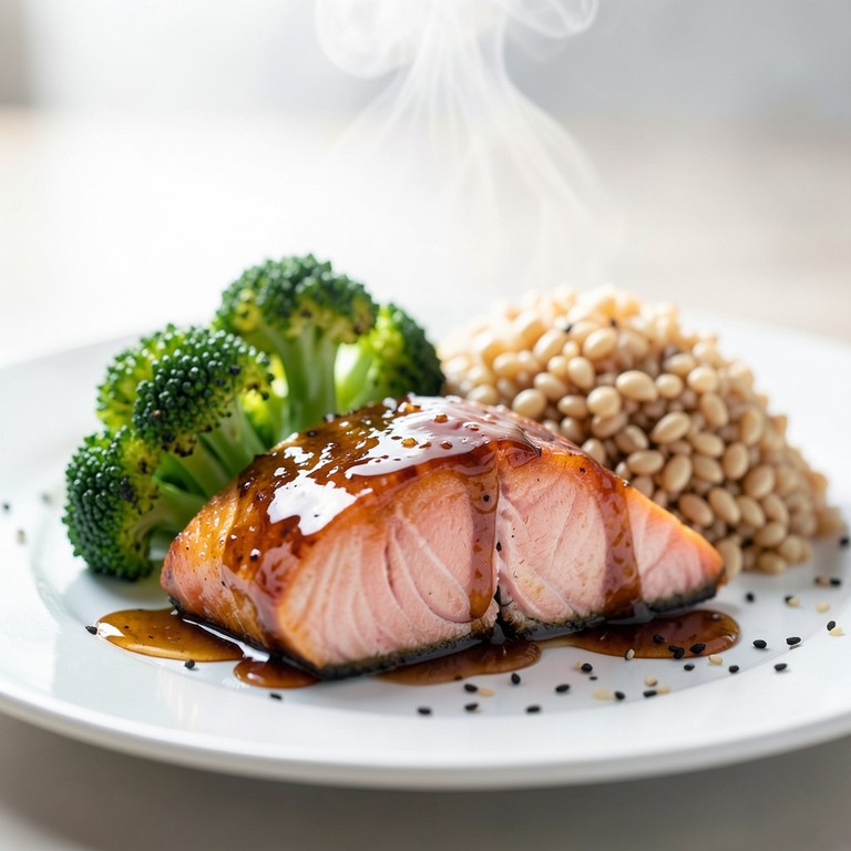 Asiatisch Glasierter Lachs mit Ebly und Brokkoli aus dem Airfryer