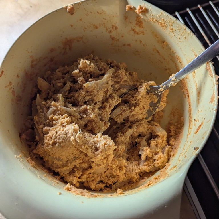 Beim nächsten Mal die Kräuter nicht vergessen. Evtl. gleich mehr davon rein. veganen Joghurt mit unterrühren und weniger Paniermehl, damit die nicht so trocken sind. Und anbraten statt backen. Und Linsen vorkochen anstatt nur einweichen.