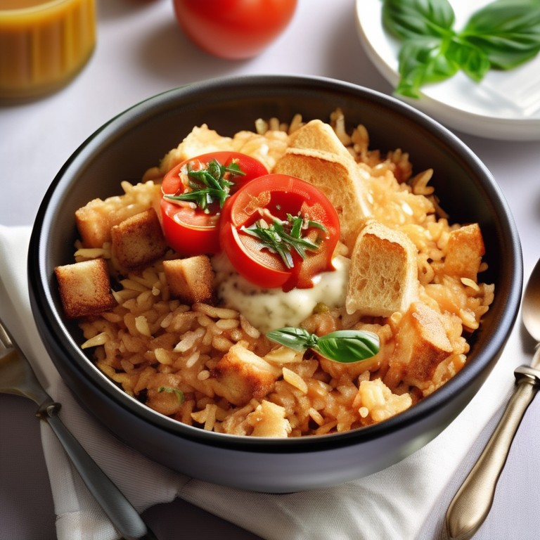 Ein köstliches Gericht aus würzigem Tomaten-Pesto-Reis in einer cremigen Sahnesauce.