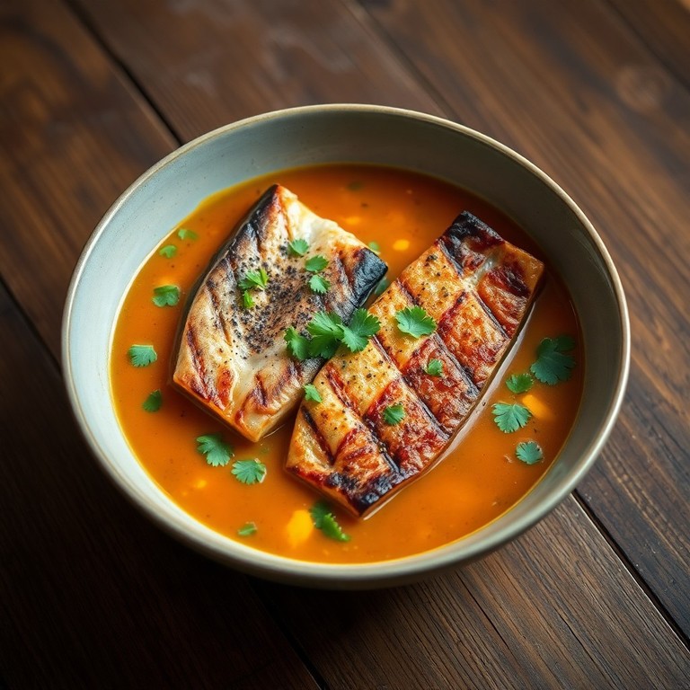 - Smoked Fish and Plantain Pepper Soup with Garri Emulsion