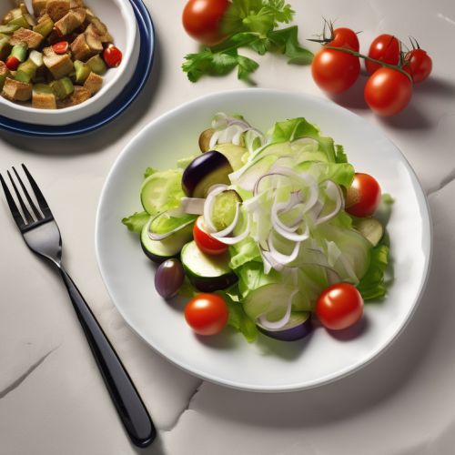 Изысканный салат с айсбергом, черри помидорами, кабачком и баклажаном