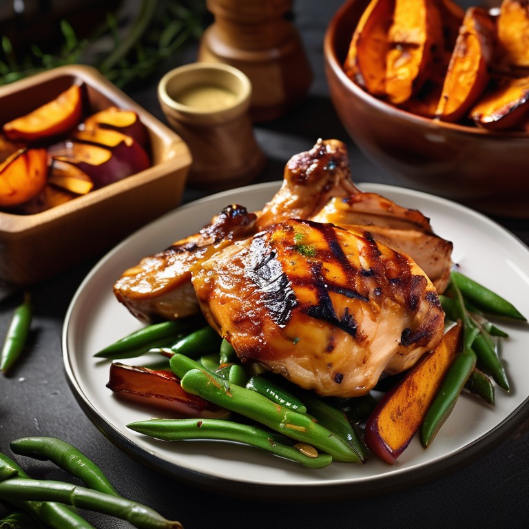- Honey Mustard BBQ Chicken with Roasted Sweet Potatoes and Green Beans