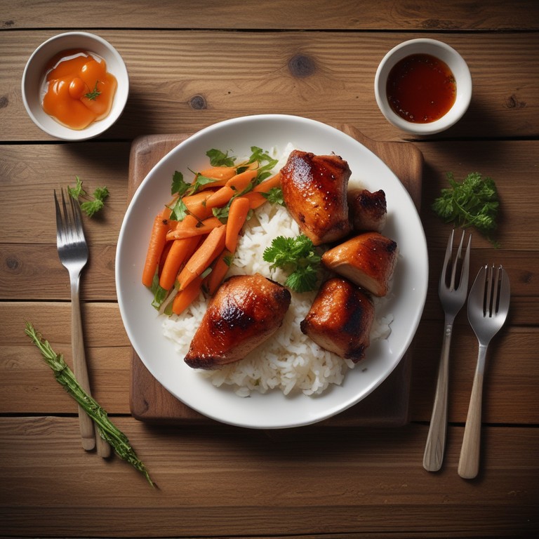 - Barbecue Chicken Thighs with Savory Rice and Roasted Vegetables