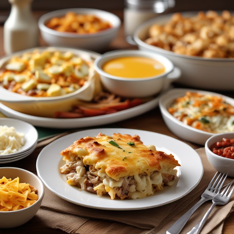 - Hearty Breakfast Casserole with Mixed Meats and Cheesy Potatoes