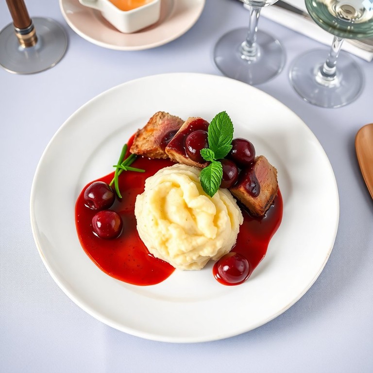 - Duck Breast with Cherries and Truffled Mashed Potatoes