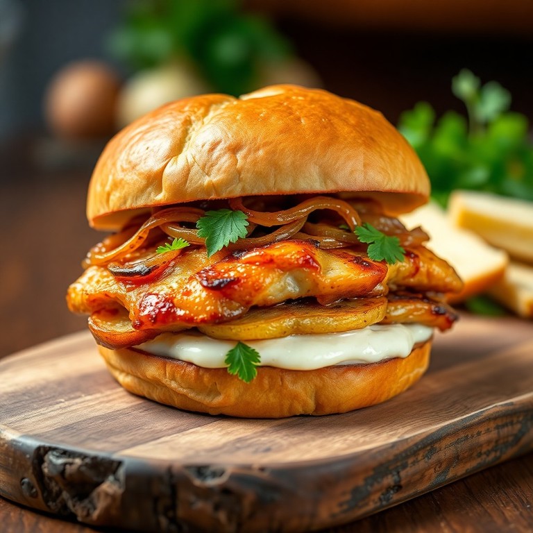 - Grilled Chicken Sandwich with Onion and Garlic Sauce