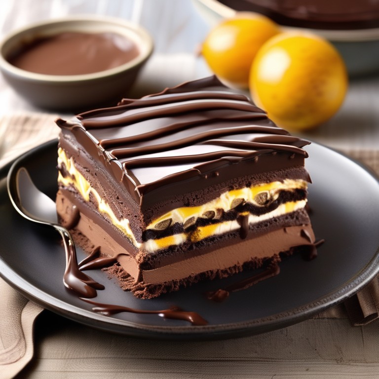 - Chocolate Lasagna with Dark Chocolate, Orange Juice, and Passion Fruit Puree