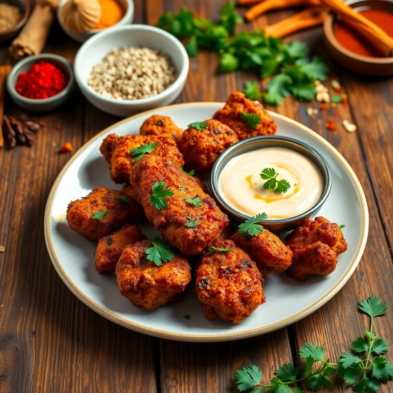 - Crispy Air Fried Chicken Tikka with Spicy Yogurt Dip