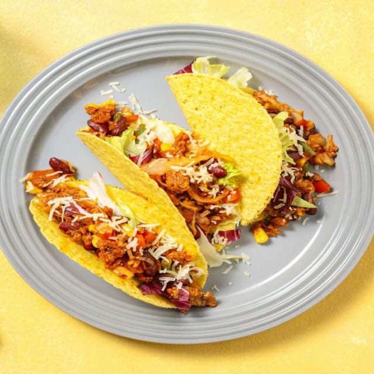 - Knapperige taco's met kipgehakt met Mexicaanse groentemix en cheddar