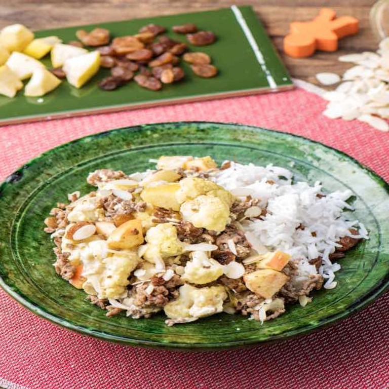 - Zuid-Afrikaanse boboti met rundergehakt, bloemkool en rijst Lekker zoet met appel en rozijnen