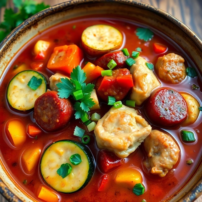 - Low-Carb Cajun Chicken & Sausage Gumbo with Zucchini