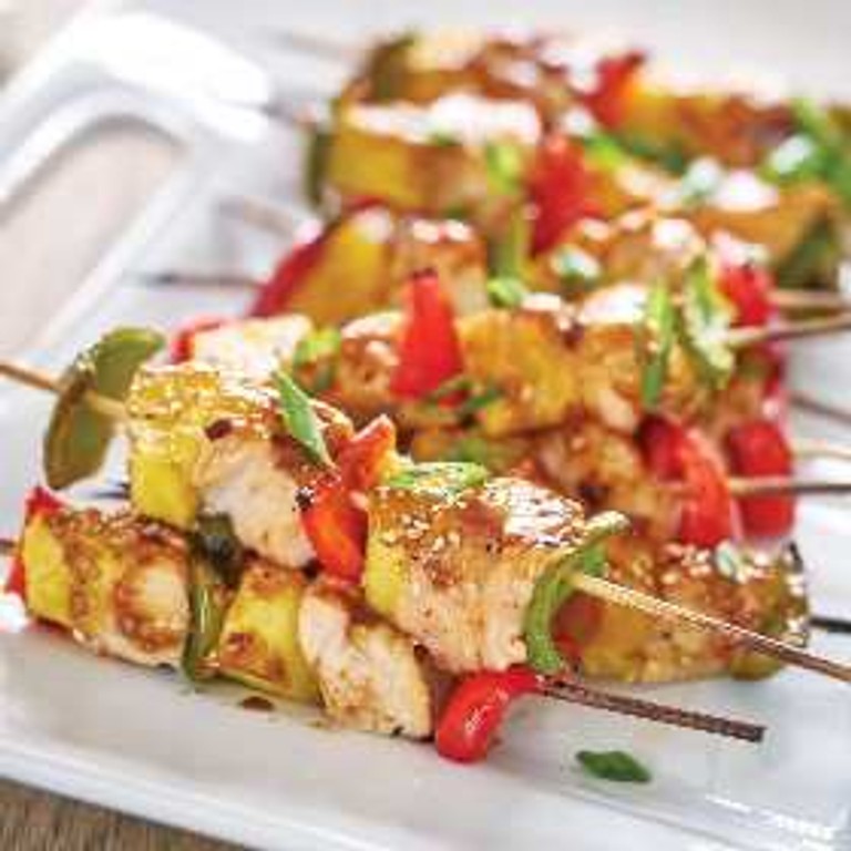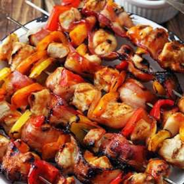 Grilled Honey BBQ Bacon Chicken Kabobs
