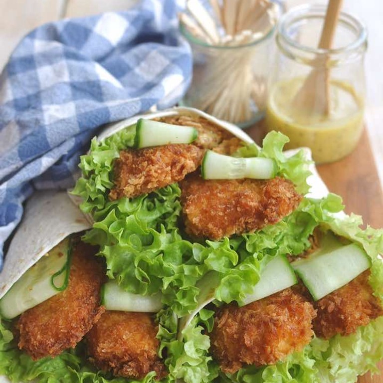 - Broodje kipgyros met aioli met knapperige salade van komkommer, wortel en tomaat