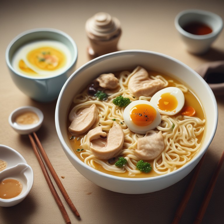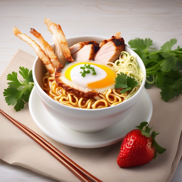 - Cheesy Ramen Noodle Bowl with Grilled Chicken and Strawberry Egg Topping
