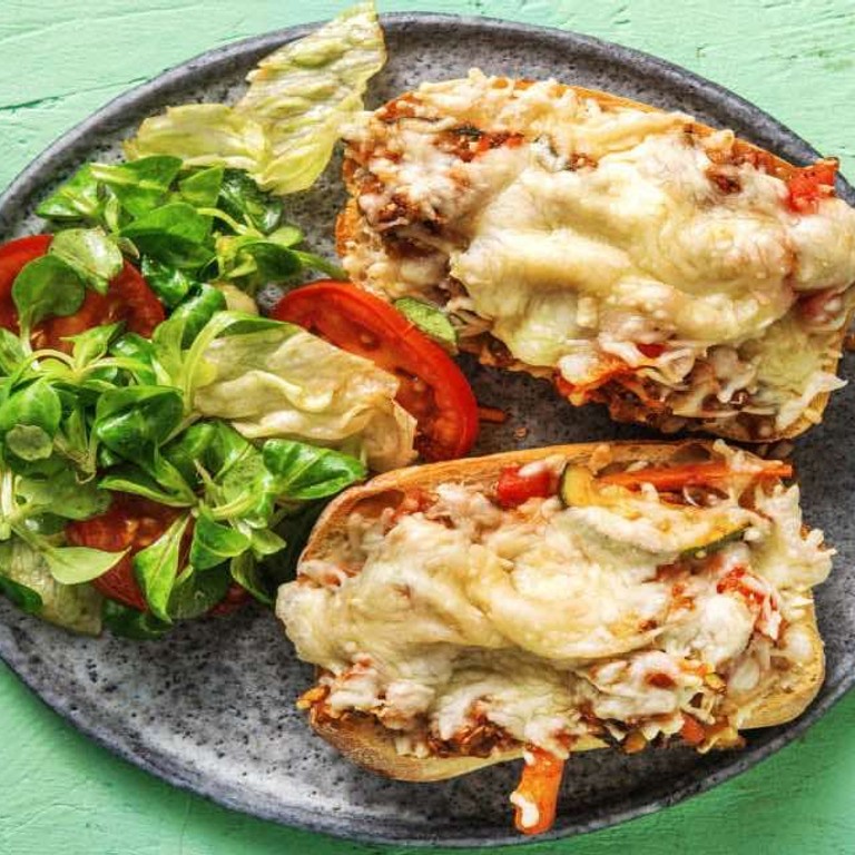 - Broodje gehakt met gesmolten kaas met groente en salade