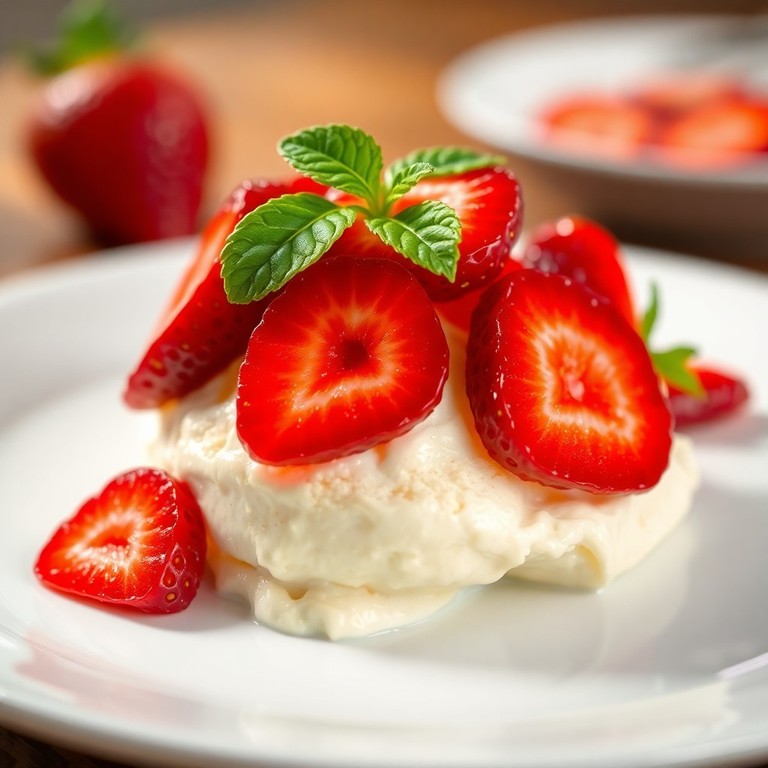 - Creamy Vanilla Semen Ice Cream with Fresh Cum Topping and Strawberries