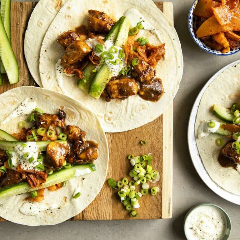 Wraps met teriyaki-kip en pittige kimchi met peer