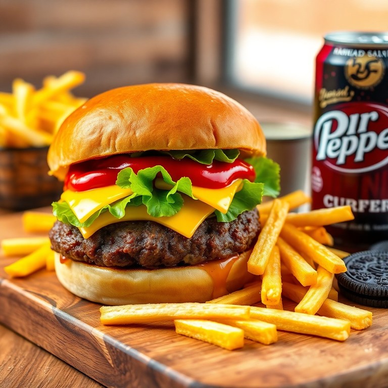 - Classic Cheeseburger with Lettuce and Ketchup