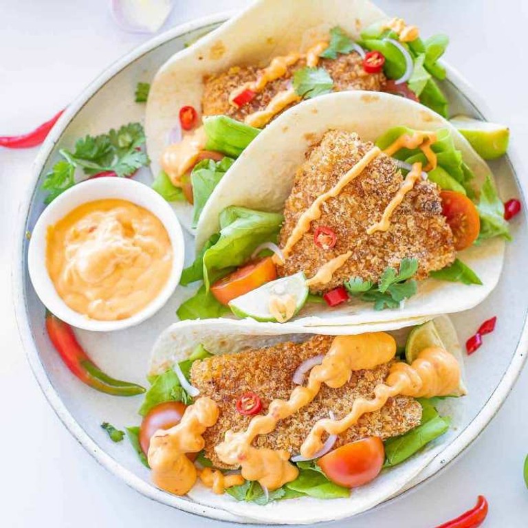 - Baja Crispy Fish Tacos wi Lime Sauce