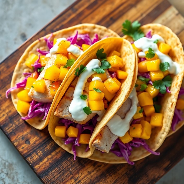 - Grilled Fish Tacos with Vibrant Mango Salsa and Spicy Lime Crema