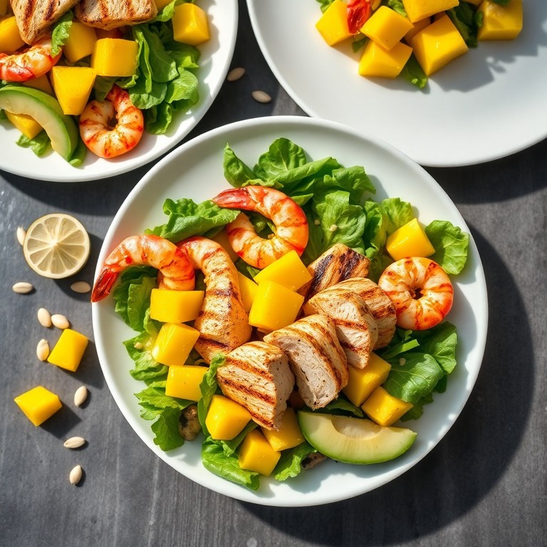 - Tropical Grilled Chicken, Mango, and Prawn Salad with Lime-Cilantro Vinaigrette