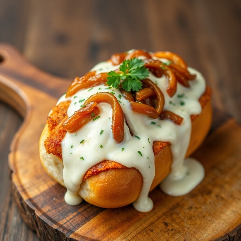 Milanesa de Pollo con Pancho y Salsa Cremosa