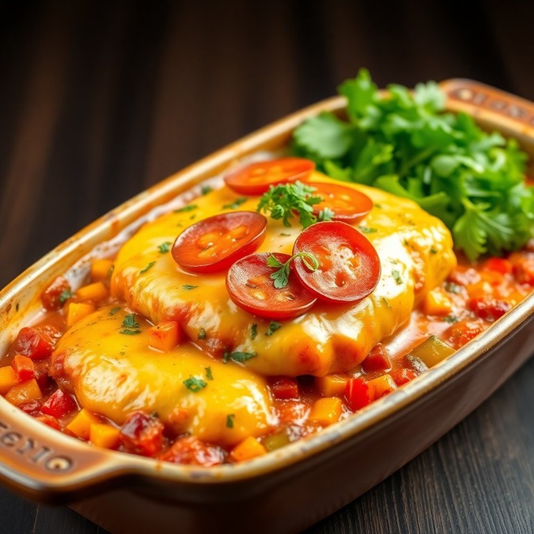 Pepperoni Chicken Bake with Cheesy Pepper Topping