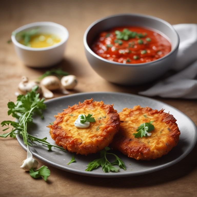 Crispy Potato Fritters with Tomato Garlic Sauce