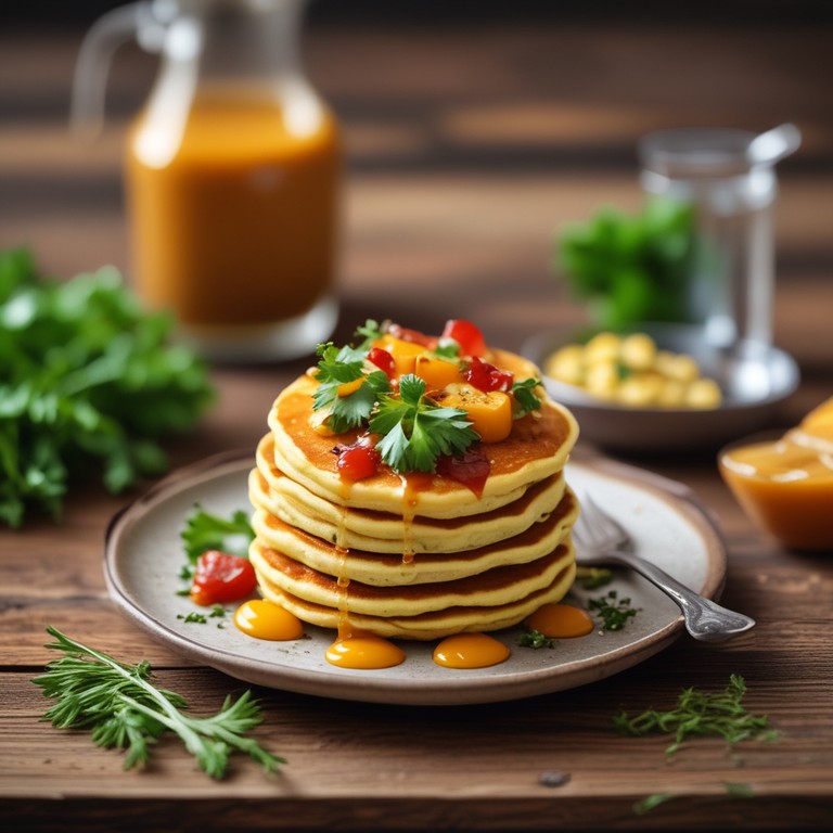 Savory Corn Flour Pancakes with Egg and Sauce