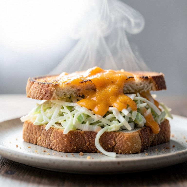 Sanduíche Aberto de Cheddar e Repolho Cremoso