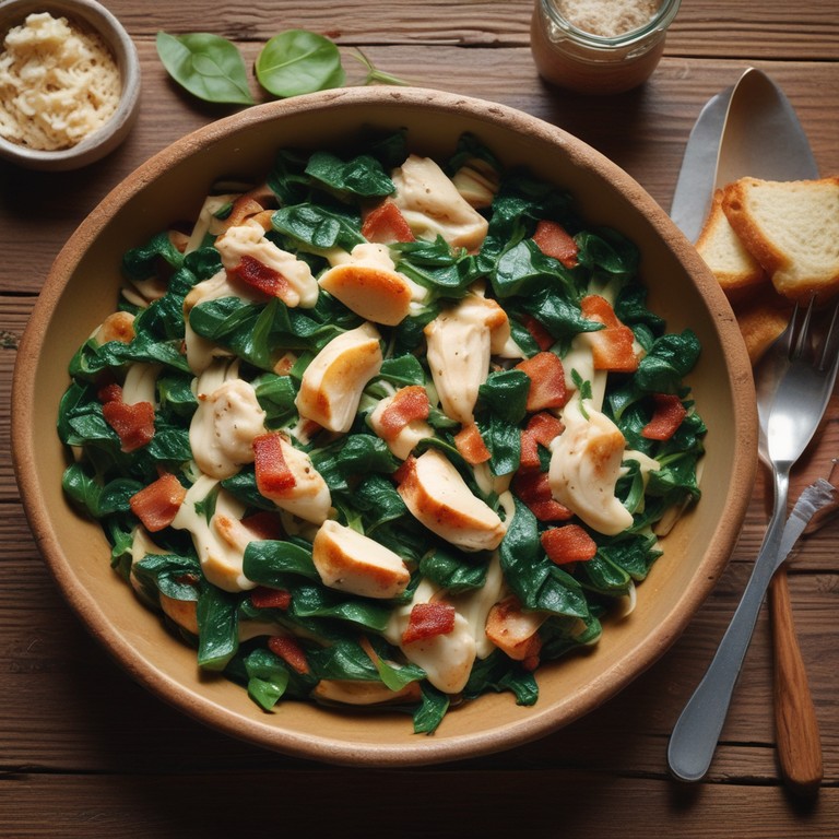 Creamy Chicken and Spinach Pasta with Crispy Bacon