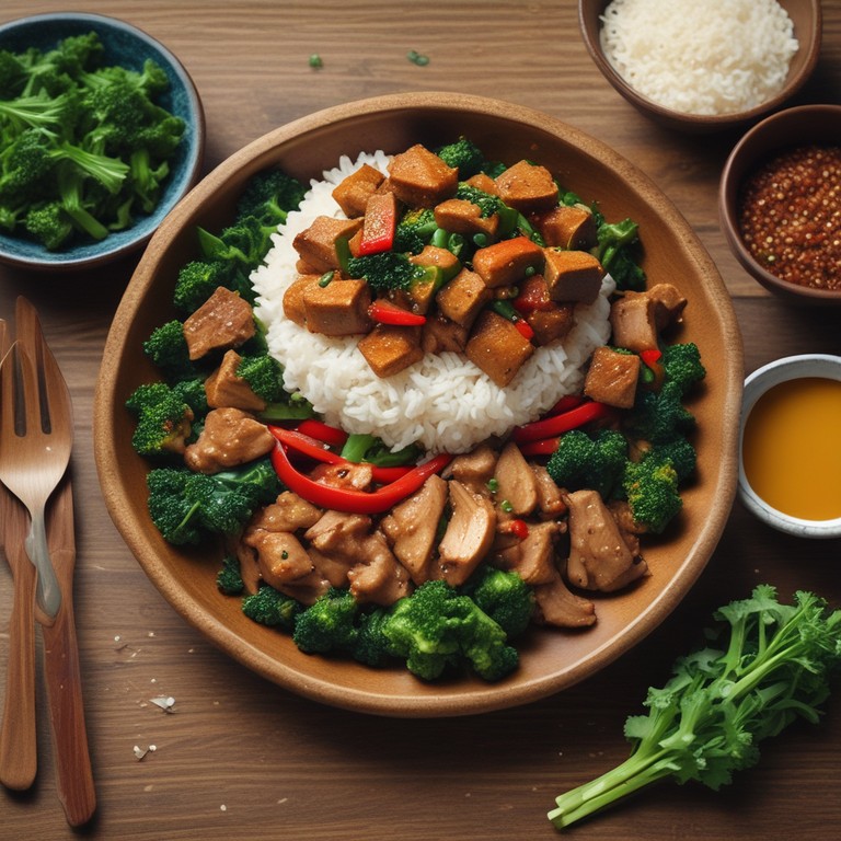 Savory Seitan Stir-Fry with Rice and Kale
