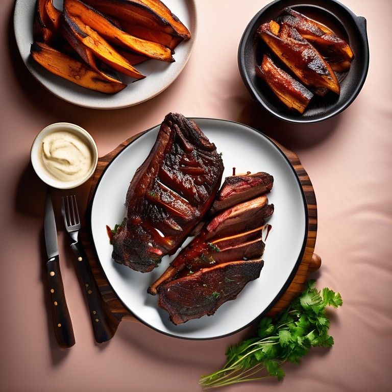Grilled BBQ Beef Ribs with Roasted Sweet Potato Wedges