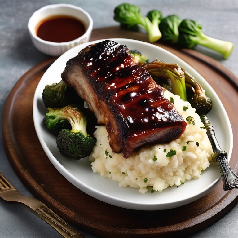 Tangy BBQ Pork Ribs with Roasted Brussels Sprouts and Garlic Parmesan Mashed Cauliflower