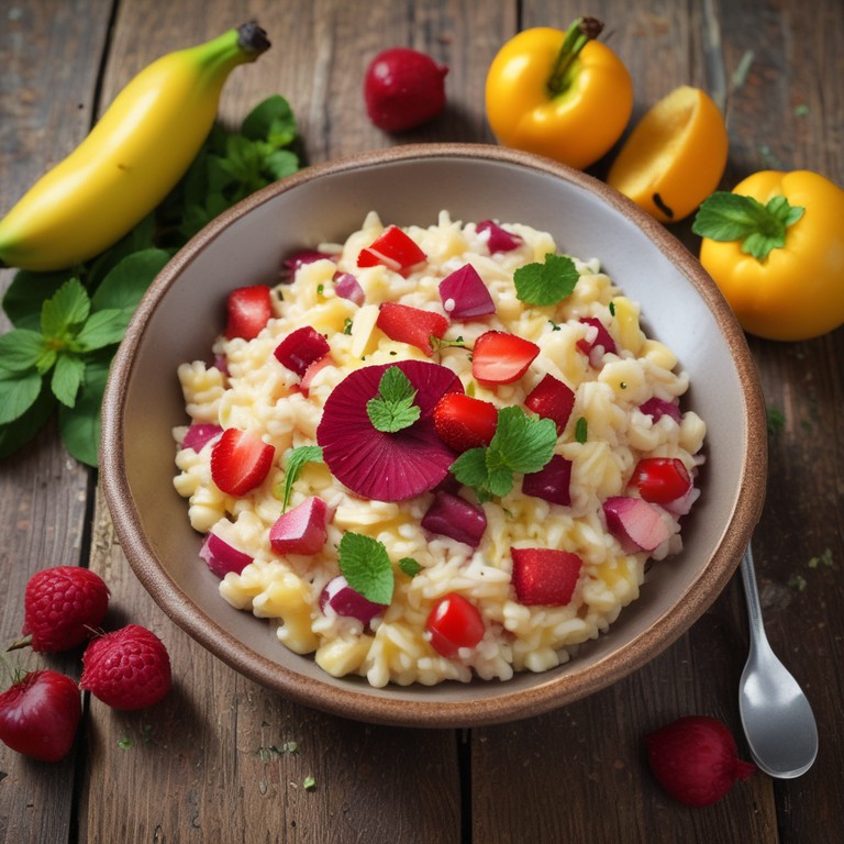 Vibrant Risotto with Banana, Strawberry, Beetroot, and Orange