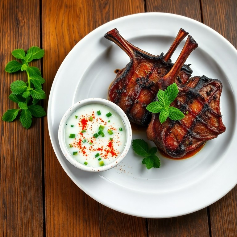 Mint-Cilantro Lamb Chops with Cucumber Raita