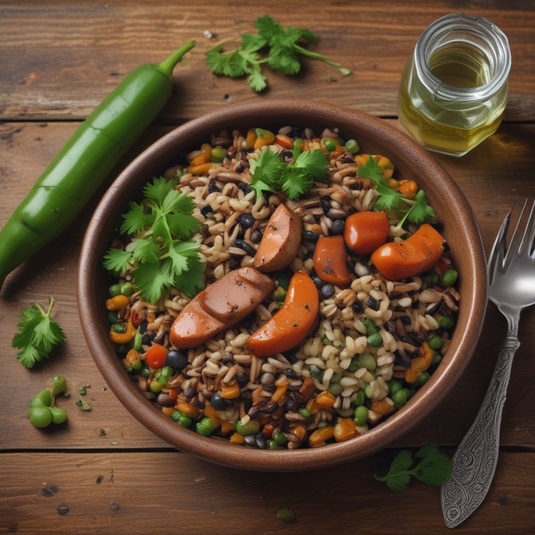 Salsicha com Arroz Selvagem, Feijão e Ervilhas